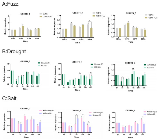 3.8. Expression Patterns of HIT4 Genes in G. barbadense