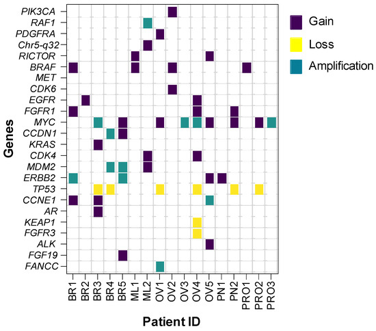- Beroukhim, R.; Mermel, C.H.; Porter, D.; Wei, G.; Raychaudhuri, S.; Donovan, J.; Barretina, J.; Boehm, J.S.; Dobson, J.; Urashima, M.; et al. The Landscape of Somatic Copy-Number Alteration Across Human Cancers. Nature 2010, 463, 899–905. [Google Scholar] [CrossRef]