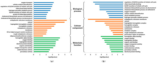 The GO enrichment analysis of the promotive and inhibitor proteins. (a) The GO enrichment analysis of the promotive proteins; (b) the GO enrichment analysis of the inhibitor proteins.