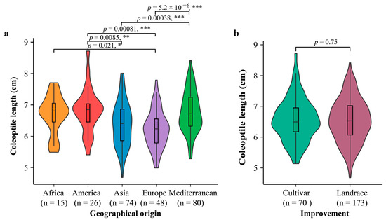- Ma, J.; Lin, Y.; Tang, S.; Duan, S.; Wang, Q.; Wu, F.; Li, C.; Jiang, X.; Zhou, K.; Liu, Y. A Genome-wide association study of coleoptile length in different Chinese wheat landraces. Front. Plant Sci. 2020, 11, 677. [Google Scholar] [CrossRef]