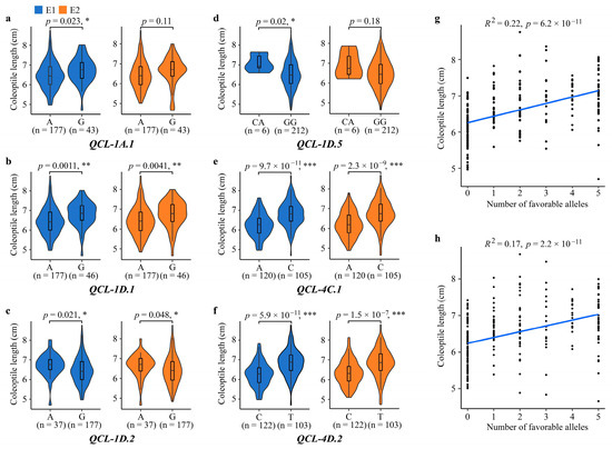 3.4. Effects of Favorable Allele on Coleoptile Length