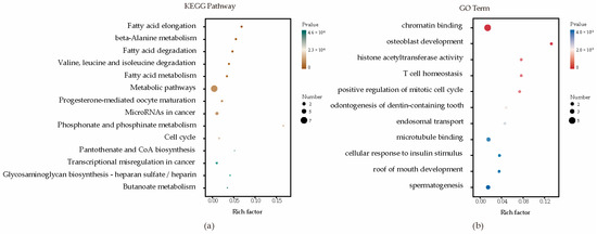 Figure 2. Enrichment analysis factor diagram. (a) Enrichment analysis of KEGG metabolic pathways; (b) Enrichment analysis of GO metabolic pathways.