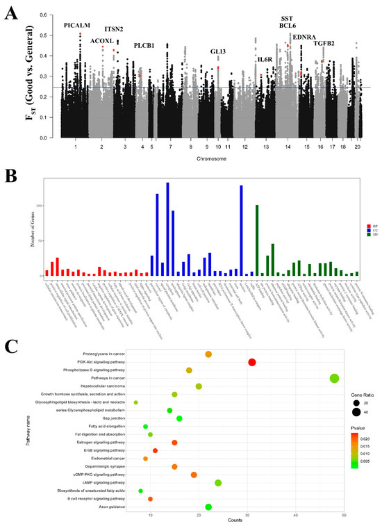 3.9. Signatures of Selection Detected for Reproductive Capacity