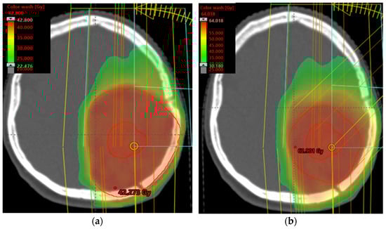 - Matsuda, M.; Mizumoto, M.; Kohzuki, H.; Sugii, N.; Sakurai, H.; Ishikawa, E. High-Dose Proton Beam Therapy ver-sus Conventional Fractionated Radiation Therapy for Newly Diagnosed Glioblastoma: A Propensity Score Match-ing Analysis. Radiat. Oncol. 2023, 18, 38. [Google Scholar] [CrossRef]