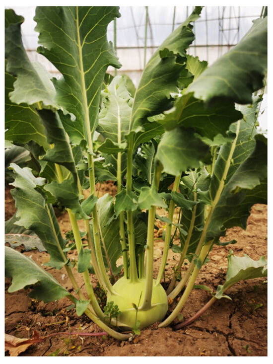 Kohlrabi (Brassica oleracea var. gongylodes Linnaeus, 1753), an important swollen-stem vegetable variety of B. oleracea variety, originated from northwestern Europe and is widely cultivated in Europe, the US, Canada, and Asia [1]. The swollen stem at the base of the plant is mainly consumed by humans as food [2,3]. Studies have shown that the swollen stem of kohlrabi has high nutritional value, particularly in vitamin C, vitamin E, and tocopherols [4,5,6]. In addition, potential antidiabetic, anti-inflammatory, and antioxidant properties and anticancer effects have been found in kohlrabi [7].