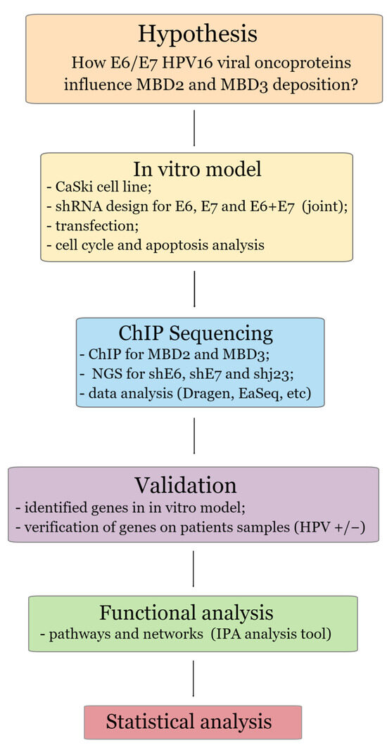 This study aims to evaluate the genome-wide binding patterns of the NuRD complex components (MBD2, MBD3) in the presence of HPV16 E6/E7 oncogene activity using ChIP-seq techniques. Additionally, we seek to determine the potential of genes identified through this experimental model to differentiate between cervical precursor lesions, with the aim of establishing their utility as biomarkers. Also, the localization of the MBD2/MBD3 NuRD Complex in the context of viral infection will provide new perspective on comprehending the cellular and molecular pathways influenced by HPV16 E6/E7 oncoproteins. Given the NuRD complex’s propensity to impact tumorigenesis by altering the expression and function of transcription factors, our investigation revealed valuable insights into this process [10].
