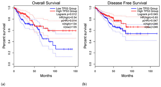 - Kandioler-Eckersberger, D.; Ludwig, C.; Rudas, M.; Kappel, S.; Janschek, E.; Wenzel, C.; Schlagbauer-Wadl, H.; Mittlböck, M.; Gnant, M.; Steger, G.; et al. TP53 mutation and p53 overexpression for prediction of response to neoadjuvant treatment in breast cancer patients. Clin. Cancer Res. 2000, 6, 50–56. [Google Scholar]