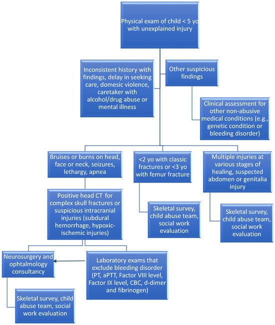 - Paul, A.R.; Adamo, M.A. Non-Accidental Trauma in Pediatric Patients: A Review of Epidemiology, Pathophysiology, Diagnosis and Treatment. Transl. Pediatr. 2014, 3, 195–207. [Google Scholar] [CrossRef] [PubMed]