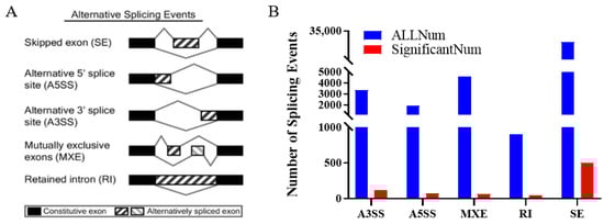 The following supporting information can be downloaded at: https://www.mdpi.com/article/10.3390/genes15050640/s1, Table S1: Primers for RT-qPCR; Table S2: All 641 alternative splicing difference genes.