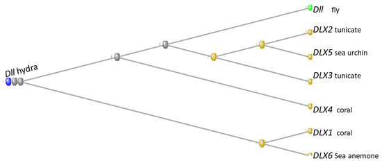 - Caracciolo, A.; Di Gregorio, A.; Aniello, F.; Di Lauro, R.; Branno, M. Identification and developmental expression of three Distal-less homeobox containing genes in the ascidian C. intestinalis. Mech. Dev. 2000, 99, 173–176. [Google Scholar] [CrossRef]