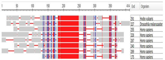 To prepare our list of tunicate-contributed orthologs, we began with the 84 protein-coding genes that Litman and Stein [4] had assigned to the tunicates, being phylostratum 10. Knowing that such an assignment was not absolute but only a consensus estimate, in that the various ortholog search groups did not agree with one another, we decided to hand-curate the list. Having only 84 genes to work with made the task of hand-curation feasible. Our searches for orthologs were performed using the protein BLAST (Basic Local Alignment Search Tool) program of the NCBI (National Center for Biotechnology Information of the National Library of Medicine): https://blast.ncbi.nlm.nih.gov/Blast.cgi (accessed on 6 September 2023) with the following search parameters: Max target sequences 1000, Expect threshold 200,000, Word size 2, Max matches in a query range 0, Matrix BLOSUM62, Gap Costs Existence: 11 Extension: 1, No compositional adjustments, No Low complexity regions filter.