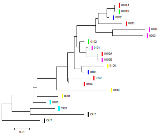 107. Bandelt, H.-J.; Forster, P.; Rohl, A. Median-joining networks for inferring intraspecific phylogenies. Mol. Biol. Evol. 1999, 16, 37–48. [Google Scholar] [CrossRef]