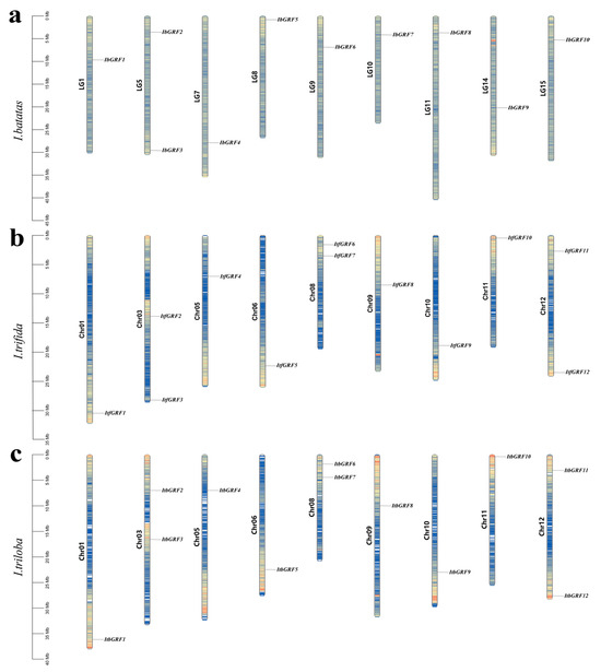 2.1. Identification of GRFs in Sweet Potato and Its Two Diploid Wild Relatives