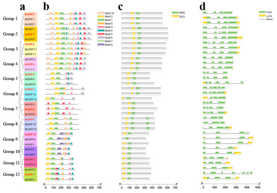 2.4. Conserved Motifs, Conserved Domain and Exon–Intron Structure Analysis of GRFs from I. batatas and Its Two Relatives I. trifida and I. triloba