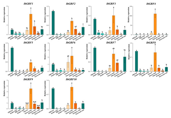 4.9. Quantitative Analysis of Candidate IbGRF Genes