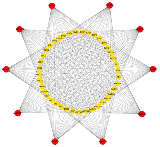 2.8. Transcript Factors Network of Sweet Potato GRF Genes