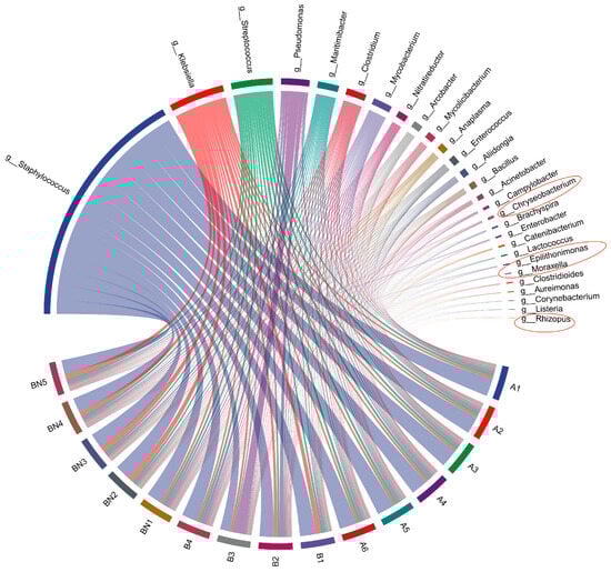 - Alessandri, G.; Sangalli, E.; Facchi, M.; Fontana, F.; Mancabelli, L.; Donofrio, G.; Ventura, M. Metataxonomic analysis of milk microbiota in the bovine subclinical mastitis. FEMS Microbiol. Ecol. 2023, 99, fiad136. [Google Scholar] [CrossRef] [PubMed]