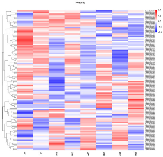 Based on the results of resequencing data, 24 genes with no sequence difference between “Qiemen” and “129−1” were further excluded (Table S10). The expression of all the remaining genes is shown in Figure 4.