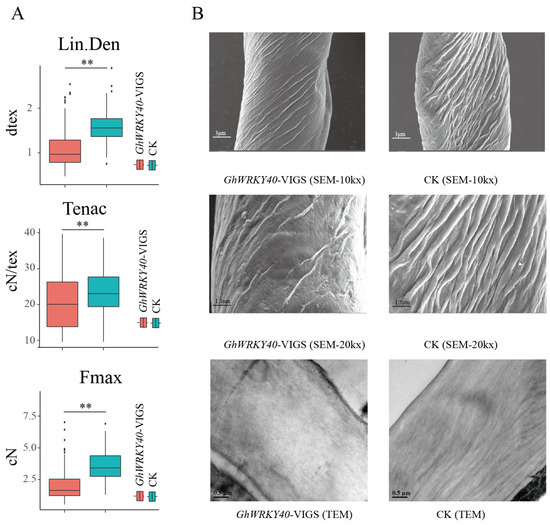3.1. GhWRKY40 Was Involved in Fiber Strength and Fiber Fineness in the VIGS Assay