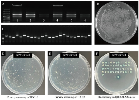 3.3. GhWRKY40-Interacting Proteins Were Screened in the Fiber Nuclear-System Y2H Library