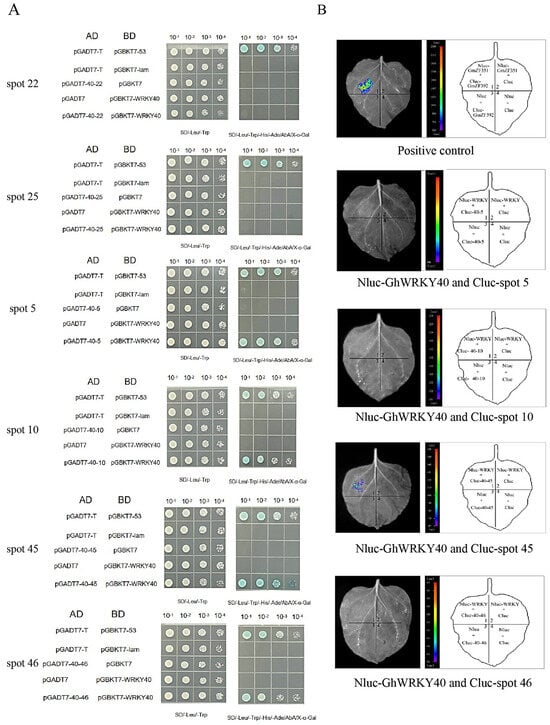 3.4. GhWRKY40 Fiber-Related Interactors Were Identified Using Y2H and Split-Luciferase Complementation Assays