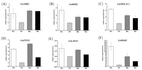 3.4. qRT-PCR Validation of the Expression Pattern of Candidates in Hot Peppers