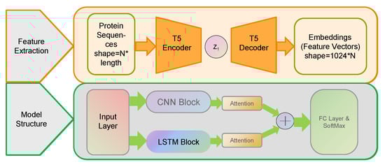 The ProtT5 [15] feature extractor was employed to process all protein sequences, which is a pre-trained model that utilizes T5 architecture that has been trained on a dataset of protein sequences. The version of the pre-trained model utilized was designated as ProtT5-XL-BFD, which underwent pre-training on the BFD dataset. The BFD dataset comprises a collection of 2.1 billion protein sequences. This model encompasses a total of approximately three billion parameters. For each protein sequence of varying lengths, the feature extractor generated a feature vector of 1024 elements based on its sequence. These feature vectors, in conjunction with the corresponding labels, were subsequently input into the model as features.