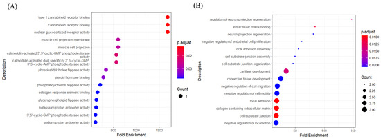 Figure 7A illustrates the outcomes of GO analysis for subtype I with a primary focus on the Molecular Function (MF) category of GO. In this representation, dots correspond to distinct biological processes, and the magnitude of each dot is proportional to the gene count associated with the process. In addition, the color gradient reflects the adjusted p-value (p.adjust), denoting the statistical significance of enrichment. Cannabinoid receptors contribute to various intestinal physiological processes, including peristalsis, secretion, and epithelial barrier function. Research indicates that the deletion of cannabinoid receptor 1 can result in intestinal inflammation and cancer [46]. Activated cannabinoid receptors, notably CB1 and CB2, are recognized for their role in modulating inflammatory responses and tumor cell proliferation [47]. Glucocorticoid receptors are pivotal in regulating immune responses, inflammation, and cell survival. In the context of gastrointestinal cancers, glucocorticoids may modulate the tumor microenvironment via their receptors, potentially impacting tumor growth and metastasis by suppressing inflammation and regulating immune cell activity. Specifically, in colorectal cancer, glucocorticoids might facilitate cancer cell proliferation and invasion through the GR-CDK1 signaling pathway [48].