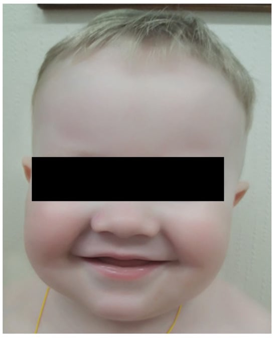 Here, we report an 18-month-old male born of a non-consanguinous marriage. Both parents and the patient’s two sisters are clinically healthy, and there was no family history of immunodeficiency or hematological disorders. Shortly after birth, the patient was found to have elevated acute phase reactants, attributed to intrauterine infection of unknown etiology, neurological abnormalities, and profound thrombocytopenia (platelet count 98 × 109/L → 19 × 109/L) that resolved spontaneously. A routine ophthalmological examination revealed the presence of ocular albinism. During the first 15 months of life, the patient suffered from various infections, including ethmoiditis, conjunctivitis, stomatitis, cutaneous candidiasis, pneumonia, and several episodes of acute bronchitis. Due to recurrent infections, he was referred to an immunologist. Upon physical examination, the patient had silvery grey hair, pale skin (Figure 1), hepatosplenomegaly, enlarged bilateral cervical and enlarged axillary lymph nodes. Laboratory investigations revealed mild anemia (Hb 10 g/dL), thrombocytopenia (PLT 101 × 109/L), neutropenia (absolute neutrophil count 0.71 × 109/L) in the presence of normal lymphocyte and total white blood cells count (LYMPH 7.08 × 109/L, WBC 8.6 × 109/L). Peripheral blood smear revealed the classic giant azurophilic peroxidase-positive granules in lymphocytes and monocytes. Bone marrow examination also demonstrated similar giant cytoplasmic inclusion in lymphocytes, monocytes, and neutrophil precursors, typically seen in CHS (Figure 2); hence, a diagnosis of CHS was suspected.