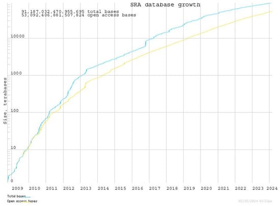 - SRA Data Growth. Available online: https://www.ncbi.nlm.nih.gov/sra/docs/sragrowth/ (accessed on 23 September 2024).