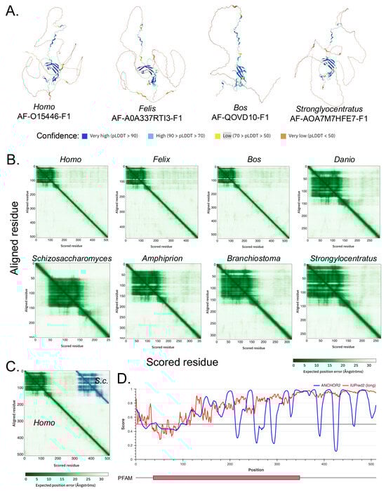 - Erdős, G.; Dosztányi, Z. Analyzing Protein Disorder with IUPred2A. Curr. Protoc. Bioinform. 2020, 70, e99. [Google Scholar] [CrossRef]