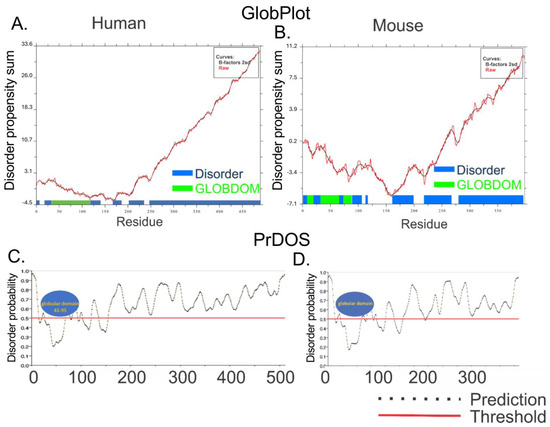 - Linding, R.; Russell, R.B.; Neduva, V.; Gibson, T.J. GlobPlot: Exploring protein sequences for globularity and disorder. Nucleic Acids Res. 2003, 31, 3701–3708. [Google Scholar] [CrossRef]