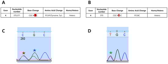 APA StyleMin, J. S., Kim, T.-i., Jun, I., Stulting, R. D., Rho, C., Han, S. B., Kim, H., Choi, J., Han, J., & Kim, E. K. (2025). Compound Heterozygous p.(R124C) (Classic Lattice Corneal Dystrophy) and p.(R124H) (Granular Corneal Dystrophy Type 2) in TGFBI: Phenotype, Genotype, and Treatment. Genes, 16(1), 76. https://doi.org/10.3390/genes16010076