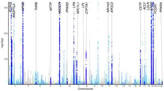 - Teslovich, T.M.; Musunuru, K.; Smith, A.V.; Edmondson, A.C.; Stylianou, I.M.; Koseki, M.; Pirruccello, J.P.; Ripatti, S.; Chasman, D.I.; Willer, C.J.; et al. Biological, clinical and population relevance of 95 loci for blood lipids. Nature 2010, 466, 707–713. [Google Scholar] [CrossRef] [PubMed]