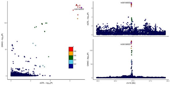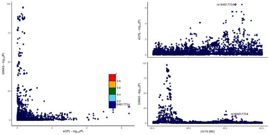- Drivas, T.G.; Lucas, A.; Ritchie, M.D. eQTpLot: A user-friendly R package for the visualization of colocalization between eQTL and GWAS signals. BioData Min. 2021, 14, 32. [Google Scholar] [CrossRef]