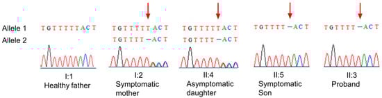 Sanger sequencing (Figure 4) confirmed the presence of the variant in all affected individuals, as well as in the unaffected daughter (individual II:4).