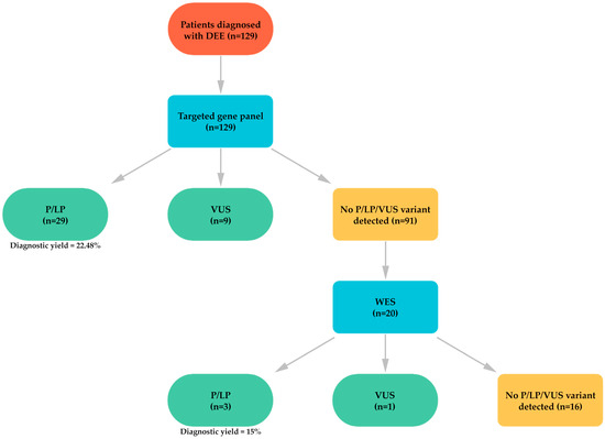 In this retrospective study, investigation of the genetic etiology of DEE in a cohort of 129 children using a combination of TGP and WES was the aim. Genotype–phenotype correlations were explored to better understand the relationship between genetic variants and clinical presentations.