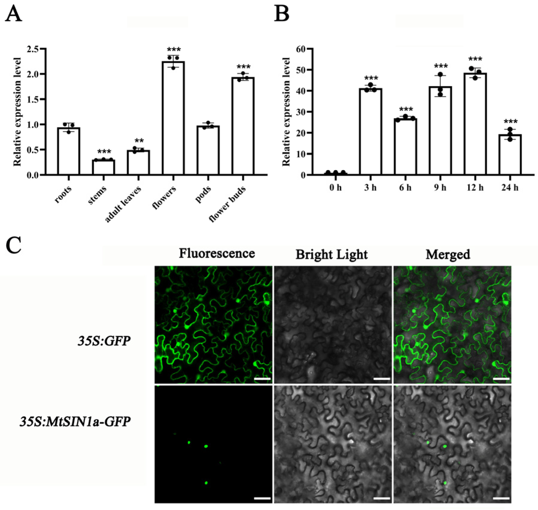 3.1. The Expression of MtSIN1a Was Activated Under Salinity Stress Treatment