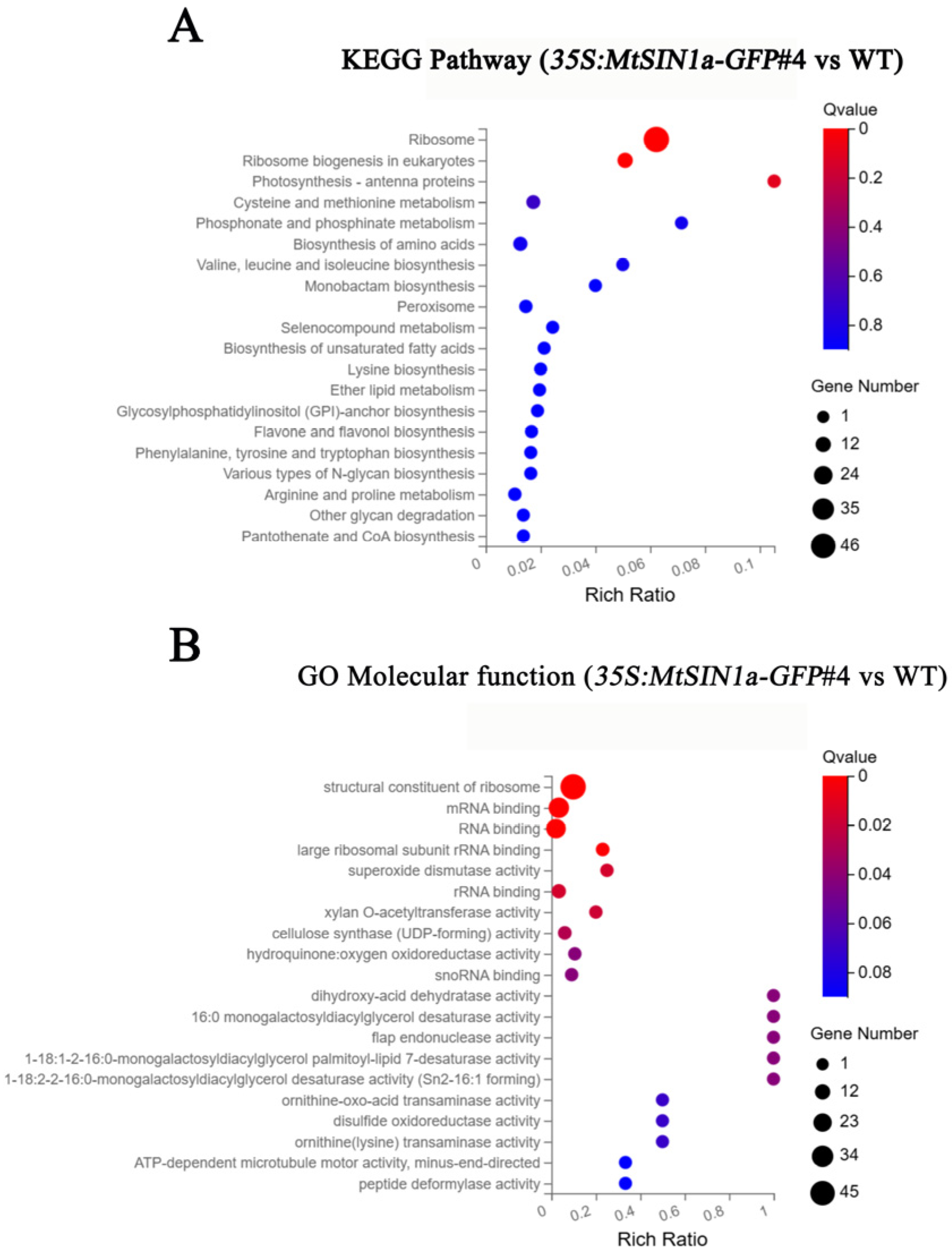 3.4. The Ribosome and ROS-Scavenging Pathways Were Activated in 35S:MtSIN1a Transgenic Alfalfa