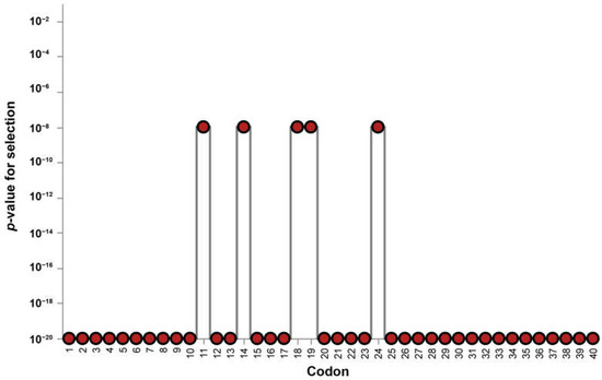 - Kosakovsky Pond, S.L.; Frost, S.D.W. Not so Different after All: A Comparison of Methods for Detecting Amino Acid Sites under Selection. Mol. Biol. Evol. 2005, 22, 1208–1222. [Google Scholar] [CrossRef]
