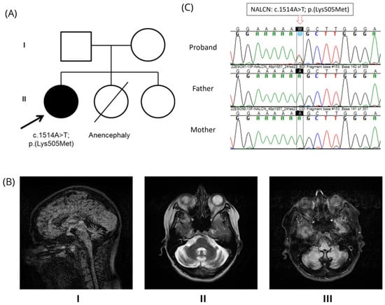 - Wang, Y.; Koh, K.; Ichinose, Y.; Yasumura, M.; Ohtsuka, T.; Takiyama, Y. A de novo mutation in the NALCN gene in an adult patient with cerebellar ataxia associated with intellectual disability and arthrogryposis. Clin. Genet. 2016, 90, 556–557. [Google Scholar] [CrossRef] [PubMed]