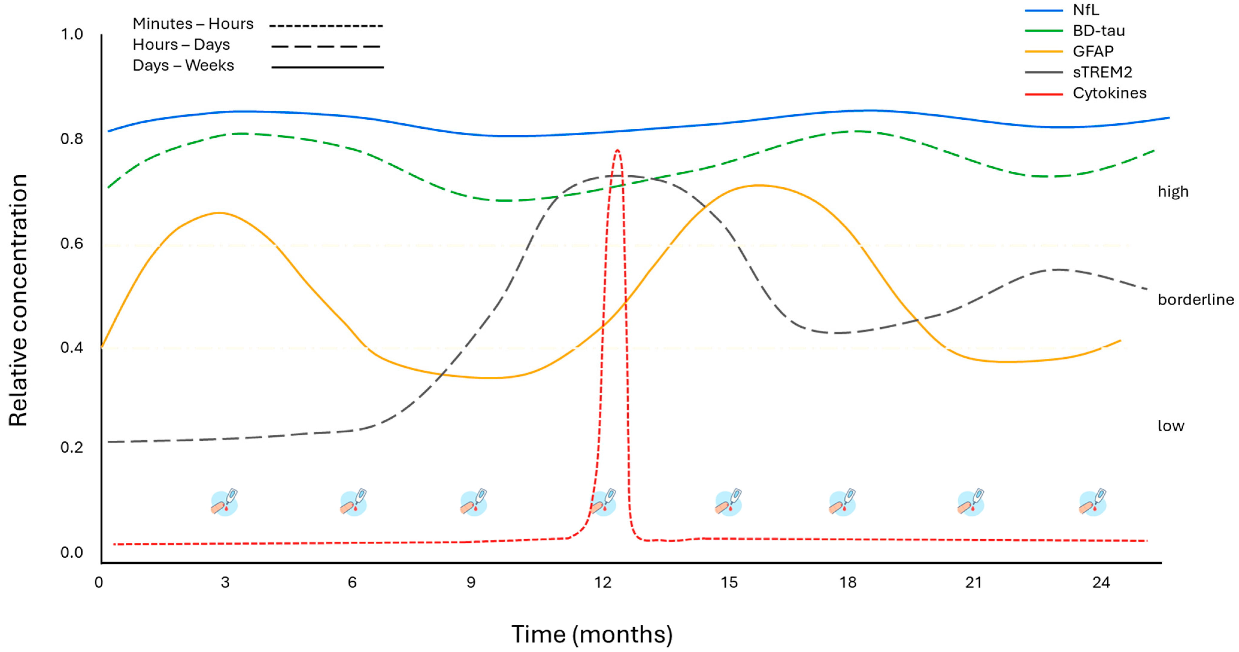 - GFAP, cytokines, or sTREM2, to capture transient glial or immune activation.