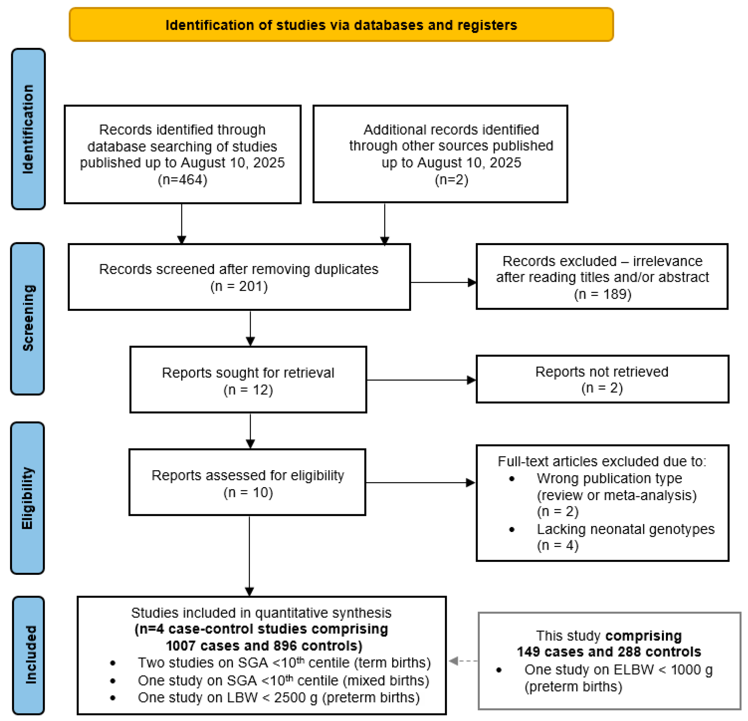 This study 2025 | Poland (Caucasian) | yes | ELBW | TaqMan | 149/228 | 65 | 67 | 17 | 128 | 80 | 20 | 0.293 | 0.151 | 8 |