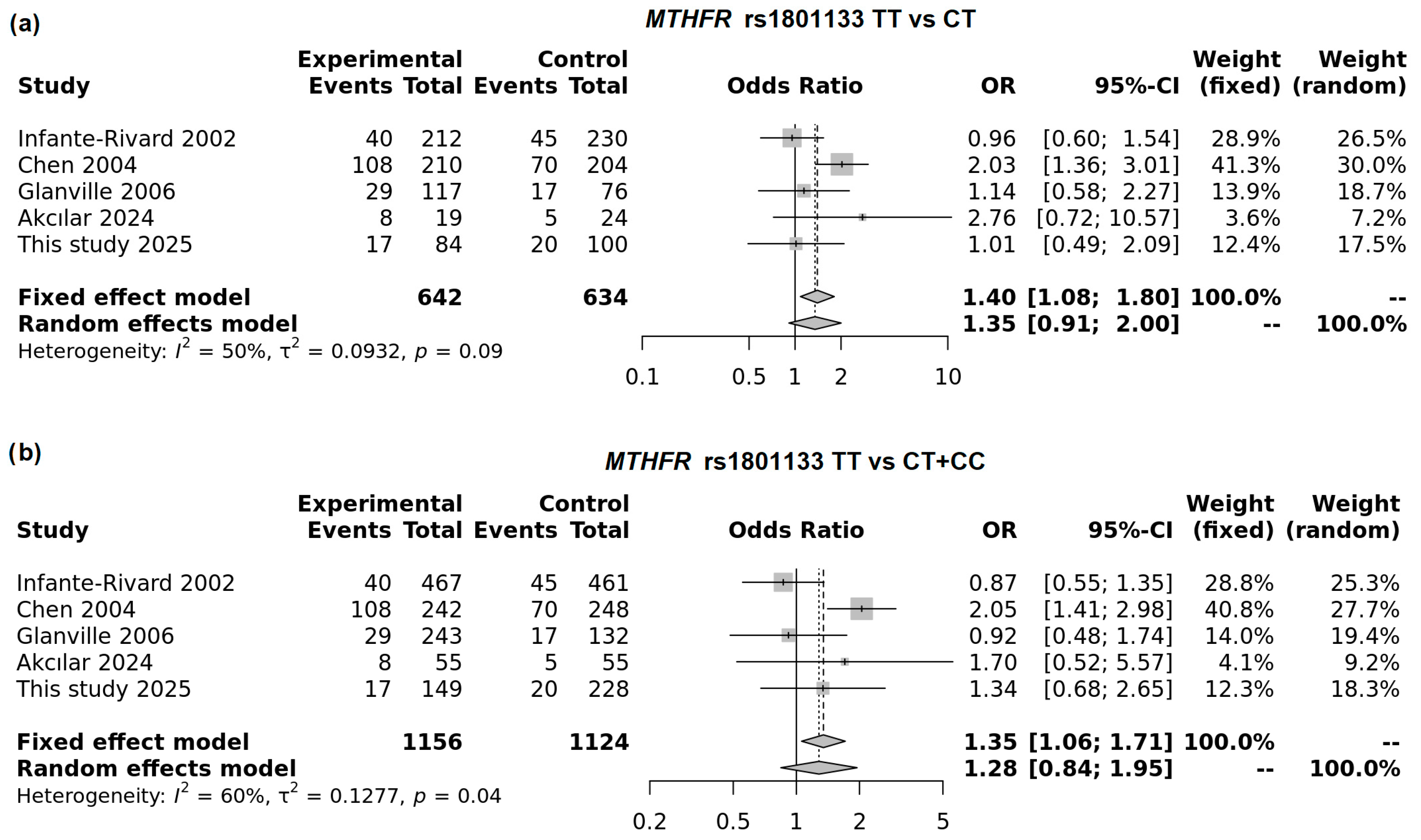 3.5. Meta-Analysis of the Effect of MTHFR Genotype on Low Birth Weight
