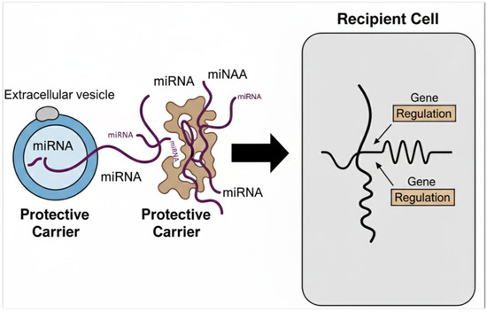 MiRNAs demonstrate notable stability in various extracellular fluids, including blood, sweat, and urine. This resilience is largely attributed to their encapsulation within MVs and other EVs, which shield them from direct degradation by RNases. The ability of EVs to mediate the transfer of miRNAs between cells also provides a mechanism that contributes to processes such as tumor metastasis, by enabling the communication and genetic influence between cancer cells. Moreover, miRNAs can evade RNase-mediated breakdown by forming protective complexes with specific RNA-binding proteins. Interestingly, circulating levels of RNases are influenced by kidney function, suggesting that alterations in renal activity could impact RNase concentrations in the bloodstream. Consequently, changes in renal function may modulate the degradation rate of circulating miRNAs, highlighting a potential link between kidney health and miRNA stability [72,73].
