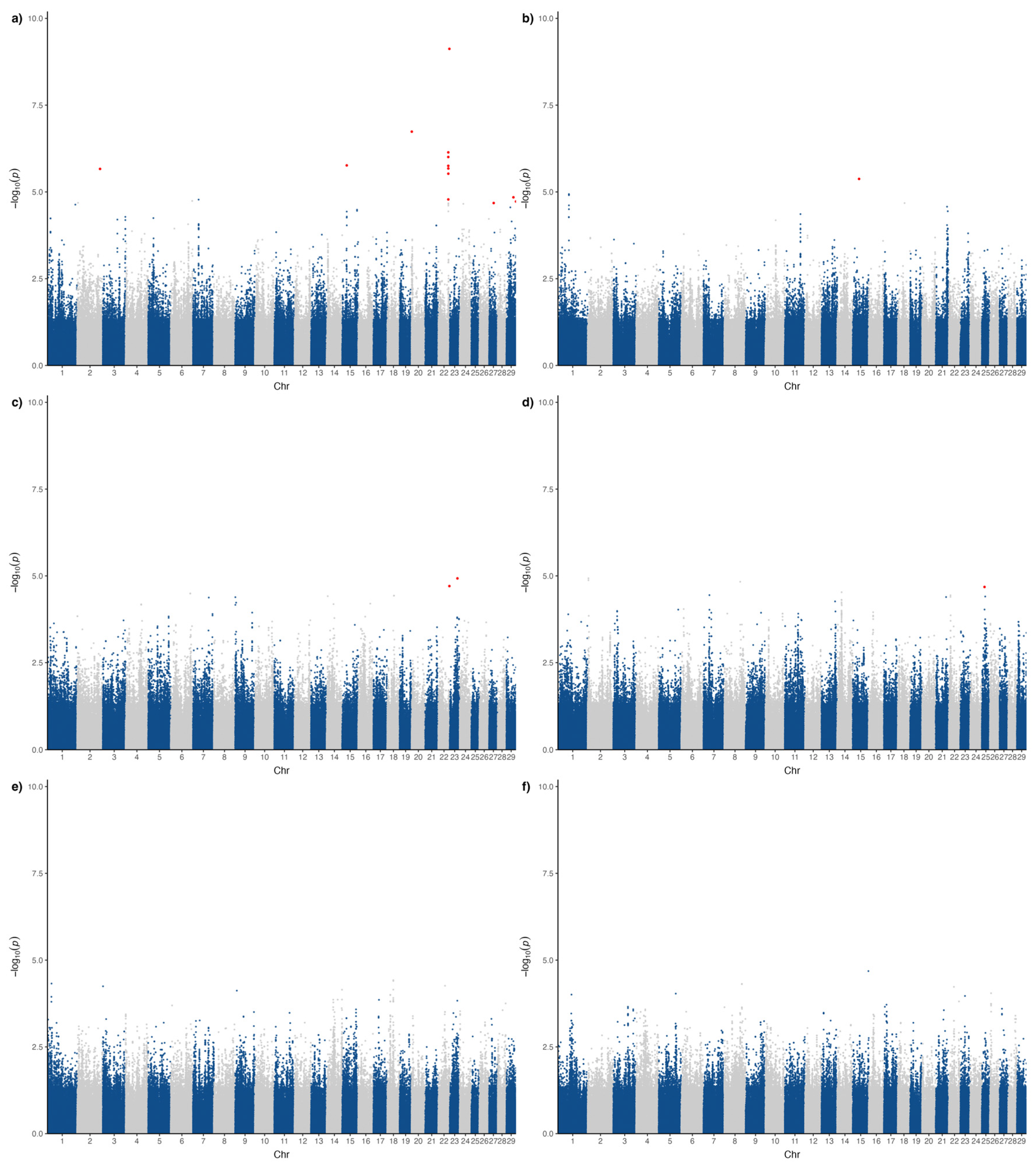 - Gurinovich, A.; Li, M.; Leshchyk, A.; Bae, H.; Song, Z.; Arbeev, K.G.; Nygaard, M.; Feitosa, M.F.; Perls, T.T.; Sebastiani, P. Evaluation of GENESIS, SAIGE, REGENIE and fastGWA-GLMM for genome-wide association studies of binary traits in correlated data. Front. Genet. 2022, 13, 897210. [Google Scholar] [CrossRef]