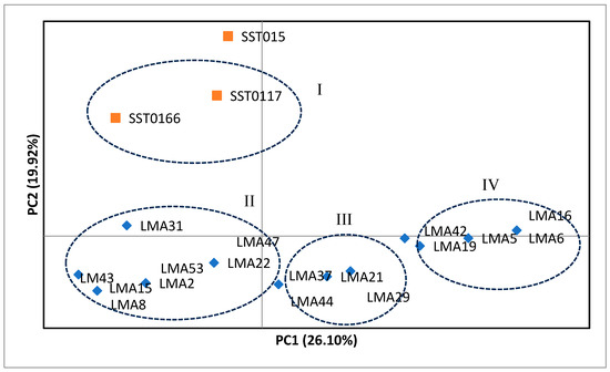 - Urquijo-Zamora, L.; Pereira-Lorenzo, S.; Romero-Rodríguez, Á.; Lombardero-Fernández, M.; Ramos-Cabrer, A.M.; Fernández-Otero, C.I. Genetic diversity of local wheat (triticum aestivum L.) and traceability in the production of galician bread (protected geographical indication) by microsatellites. Agriculture 2024, 15, 51. [Google Scholar] [CrossRef]