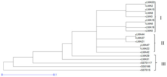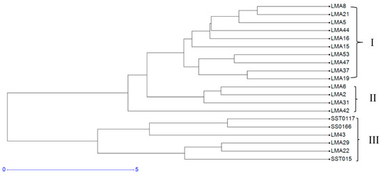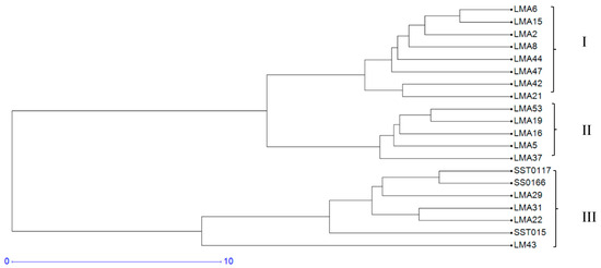 - Peakall, R.; Smouse, P.E. GenAlex 6.5: Genetic analysis in Excel. Population software for teaching and research—An update. Bioinformatics 2012, 28, 2537–2539. [Google Scholar] [CrossRef]