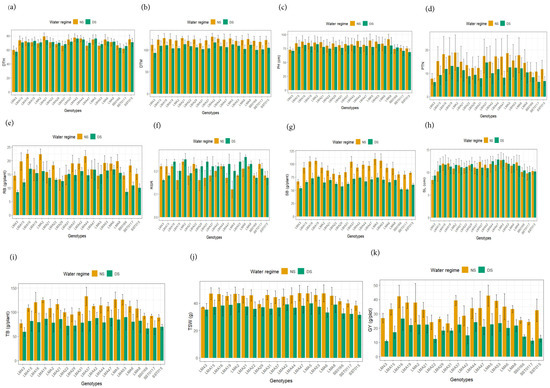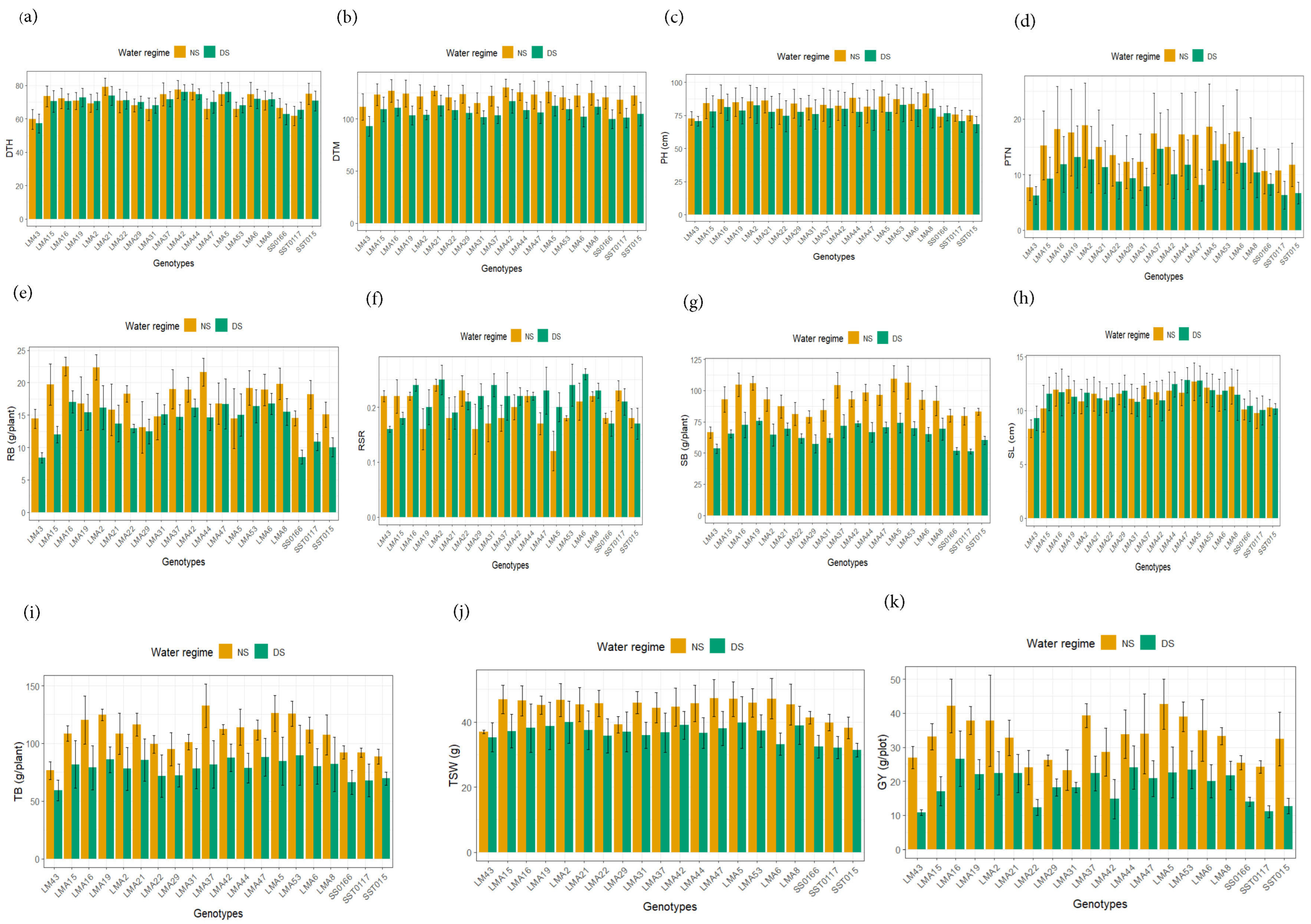 3.2.2. Agronomic Performance Under Non-Stressed and Drought-Stressed Conditions