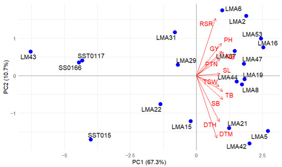 - Tahir, O.; Bangash, S.A.K.; Ibrahim, M.; Shahab, S.; Khattak, S.H.; Ud Din, I.; Khan, M.N.; Hafeez, A.; Wahab, S.; Ali, B. Evaluation of agronomic performance and genetic diversity analysis using simple sequence repeats markers in selected wheat lines. Sustainability 2022, 15, 293. [Google Scholar] [CrossRef]
